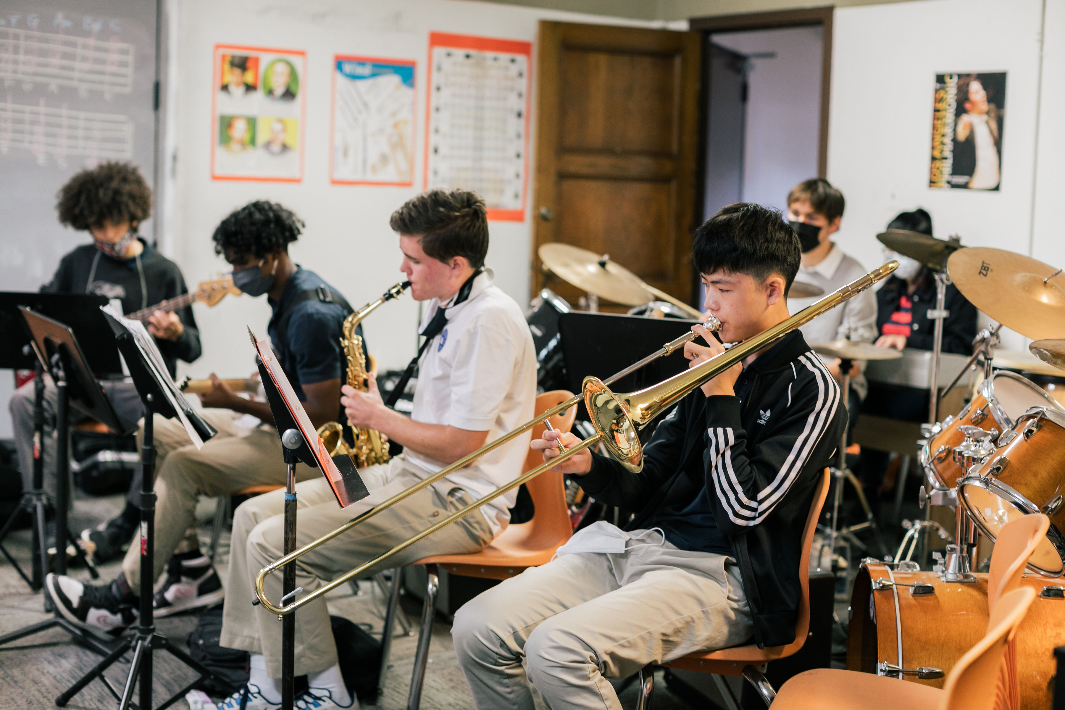 Our music program balances technical instruction with personal expression, producing confident and knowledgeable students who develop a lifelong love and appreciation for music. The curriculum explores classical, jazz, pop, and non-Western styles, providing students with a well-rounded education and an understanding of diverse cultural expressions. Students are encouraged to perform both inside and outside the classroom, in solo and group settings.