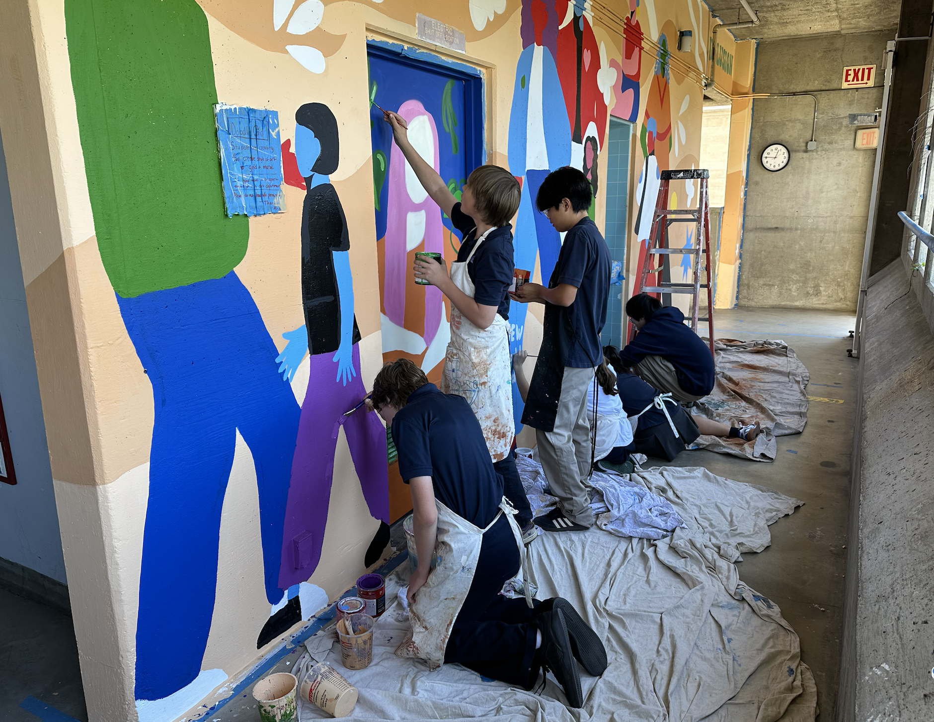 In 2024, Pilgrim School welcomed artist Brandon John Lasalle, who collaborated with students from K-12 to create a mural focused on the theme of inclusivity. The students explored various aspects of inclusivity, including neurodiversity, physical (dis)ability, race, and religion, ensuring that all kinds of students were represented in the final artwork. The project began with a doodle grid and culminated in a beautiful homage to the inclusion that Pilgrim embodies and strives to achieve. On your next visit, we invite you to view this stunning mural, located on the 4th floor of the Seaver Building and also visible from Commonwealth Avenue.